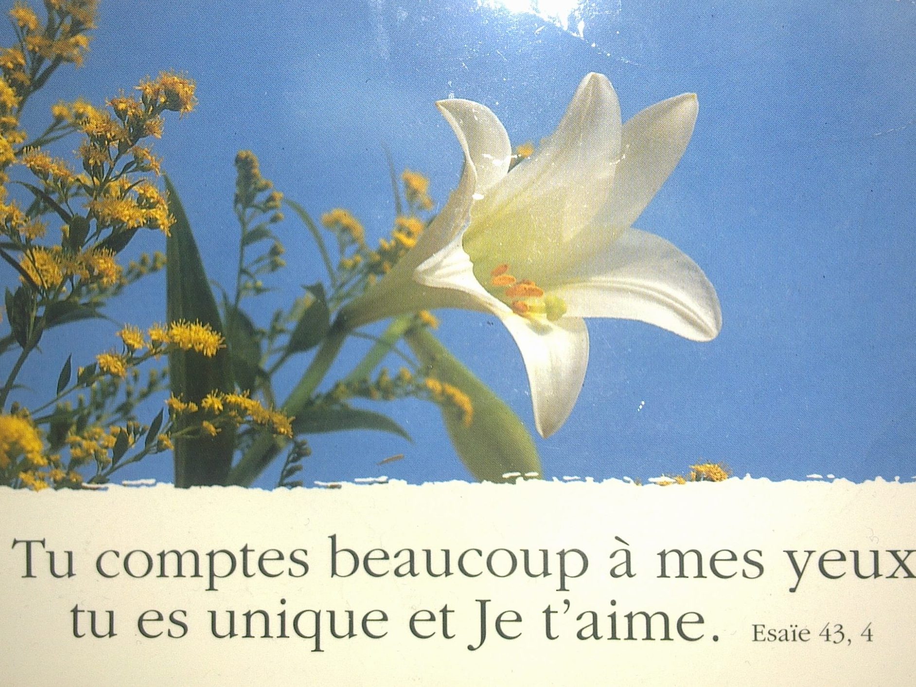 … en 2003, alors que je lisais la carte postale ci-contre, Dieu s’est révélé à moi : j’ai fait l’expérience de son existence, et surtout de son amour infini.